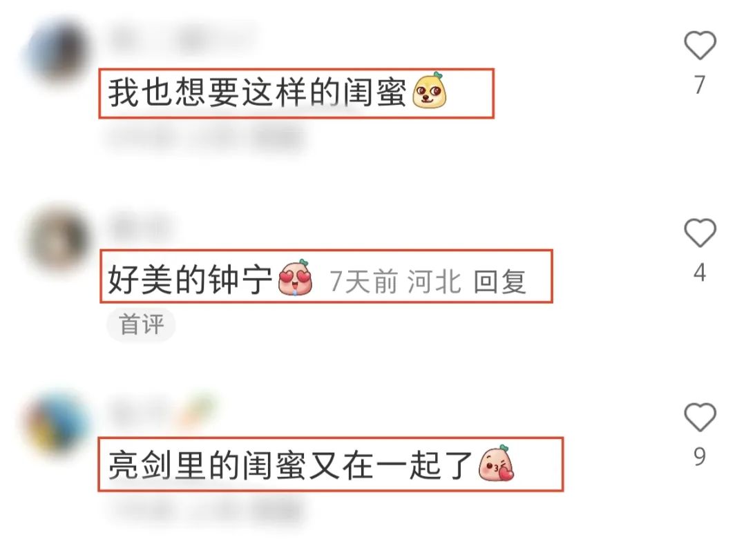 大家都在网上留言称“这姐妹情真好磕”“我也想要这样的闺蜜”“亮剑里的闺蜜又在一起了”。
